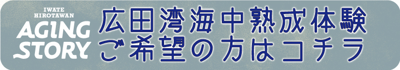 | 2019.03.13 | ●2019年4月より世界に1つだけのマイボトルを作る「広田湾海中熟成体験」の観光コンテンツ提供開始します プレスリリース ●体験内容についてはコチラ |