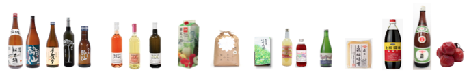 日本酒、ワイン、シードル、ホワイトリカー、ジュース(りんご、ぶどう、トマト)、お米(地元のブランド米「たかたのゆめ」、調味料(酢、醤油、味噌、梅干)の海中熟成を実施しています。